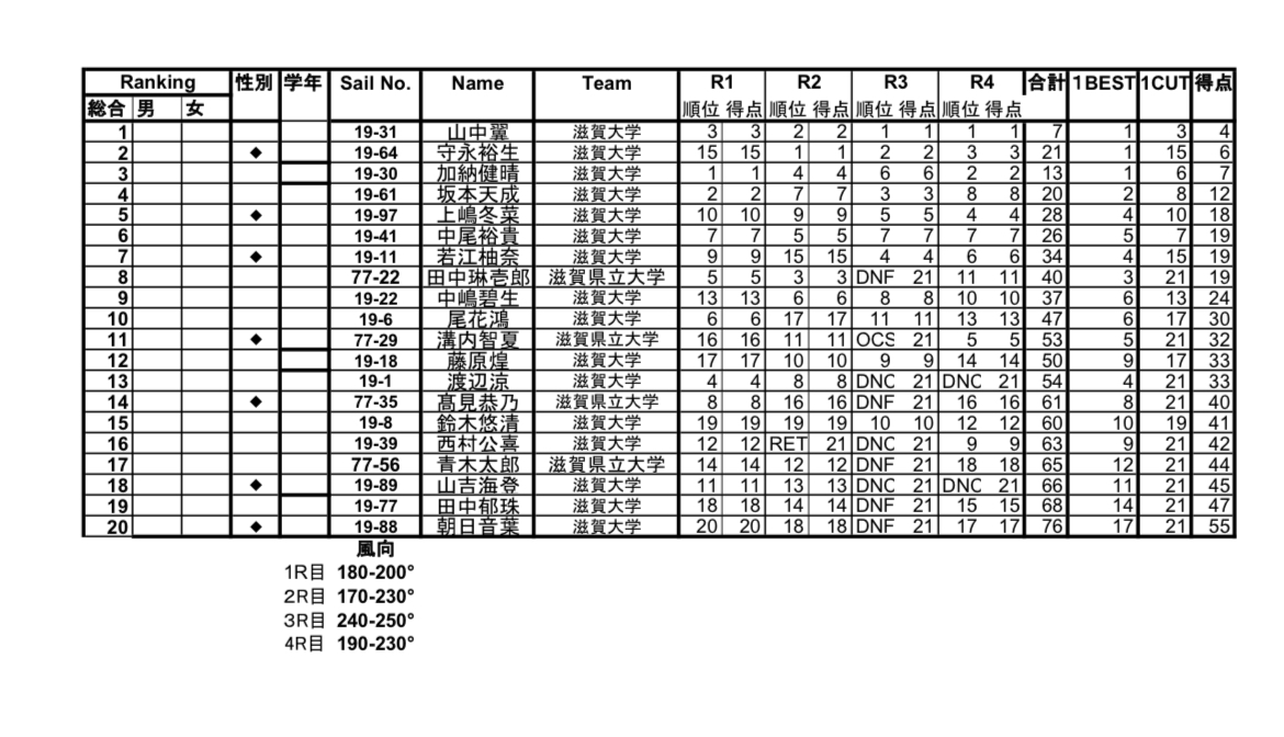 以下、本日のリザルトです。