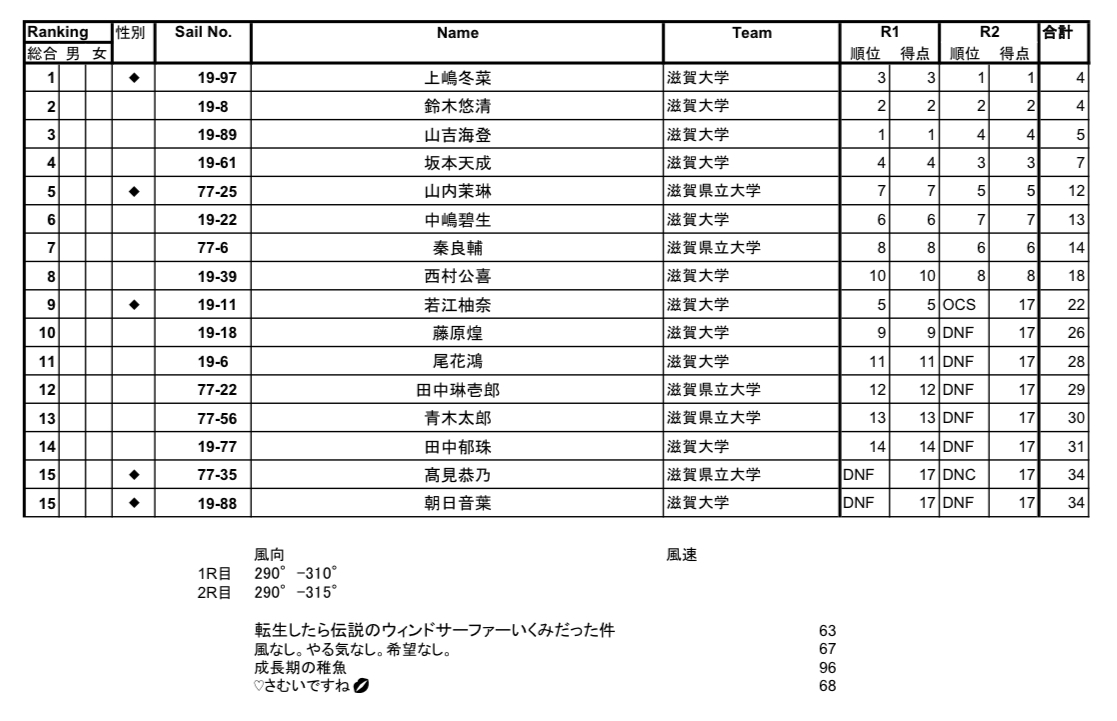 正直やめたいって思うことは多かった。1回生の終わりには腰が壊れかけて乗れるようになってきた吹きが乗れない状態があったり練習してないせいで上手く乗れないことが多かったりやめる要因はいくらでもあった。でも続けられたのはこのチームだから頑張れると思ったしウインドサーフィンを乗りこなすのが目標だったから。でも最近は迷惑かけて本当にごめんね^^