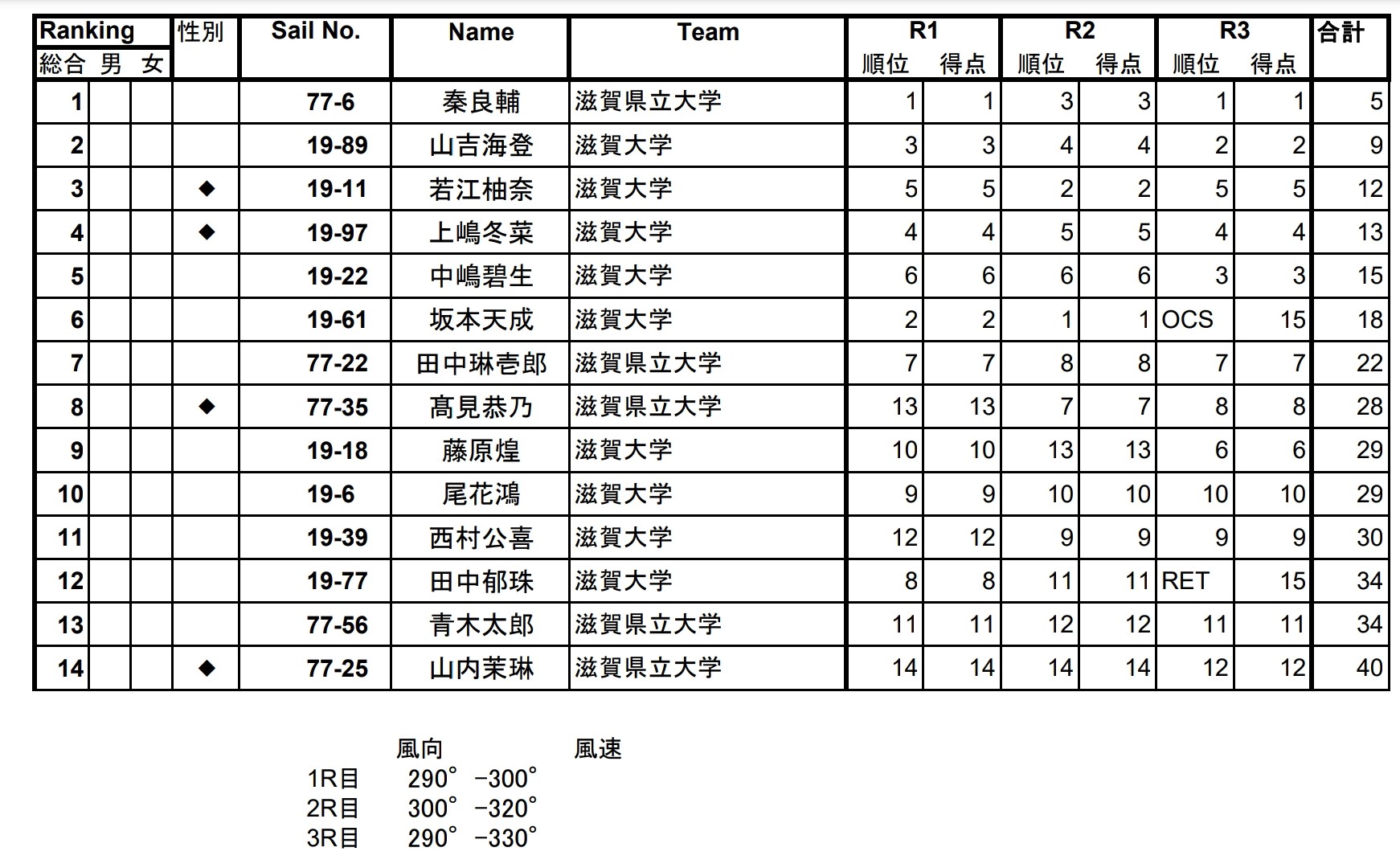 天成が総合2位かなと思っていましたが、最終レースでリコールしたため、自分がカット差で2位となりました。